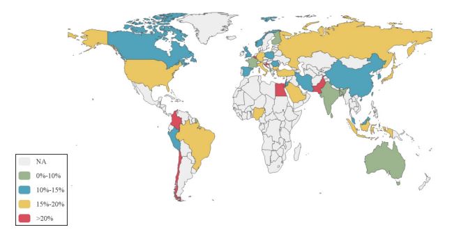 | China | 20 | 106341 | 13.0(9.9,16.4) | 99.20% |
