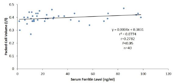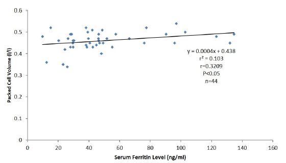 These results suggest that serum ferritin concentration is positively associated with PCV in both male and female residents living in Calabar.